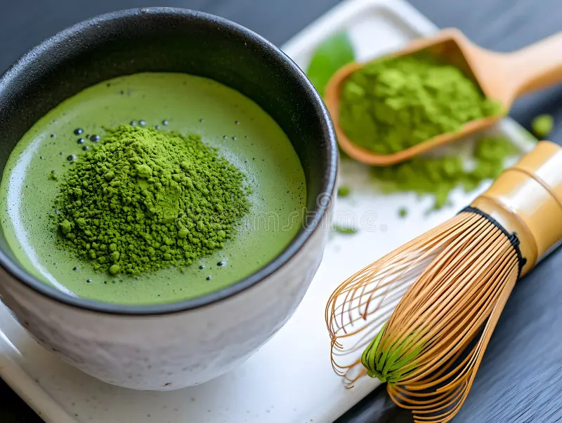 “Creamy blend of fine Japanese matcha and steamed milk. A healthy, energizing alternative to coffee.”